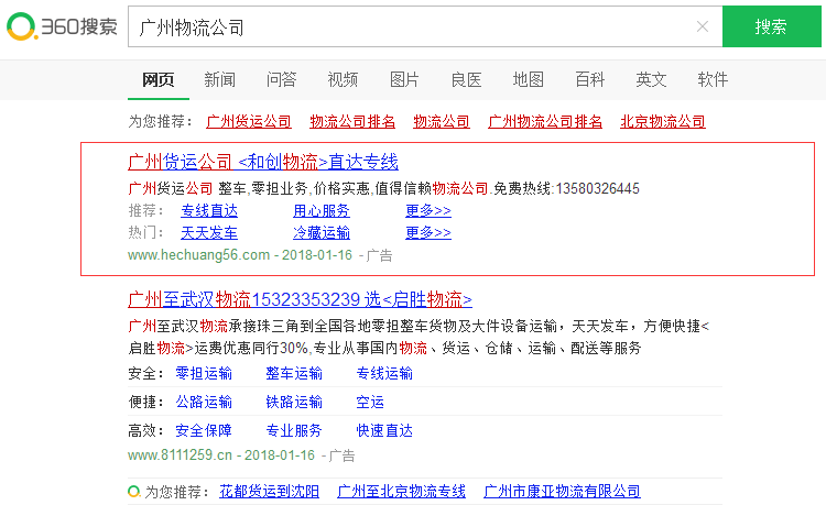 广告模式:360搜索引擎推广,SEM推广,CPC推广
