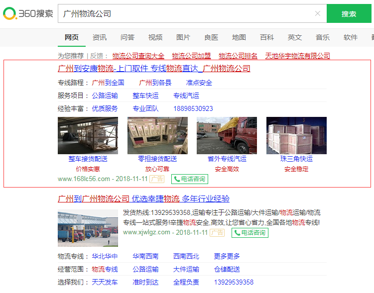 广告模式:360搜索引擎推广,CPC收费