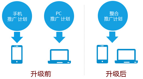 (1)无须分设备管理,升级后所有计划均为全部设备投放,帮助您PC+移动全面营销。