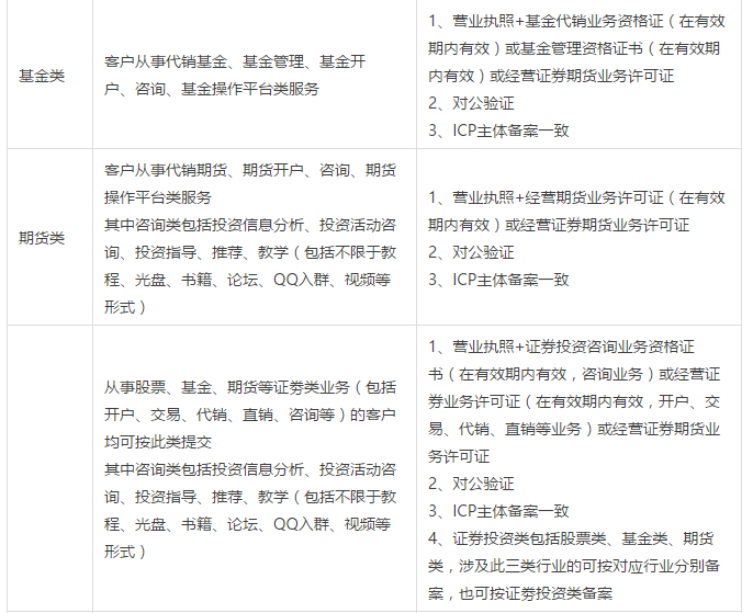 为保证客户的推广内容符合国家的相关政策、法律、法规,同意对“金融行业”资质标准进行更新。