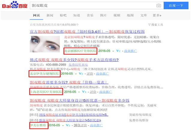 医疗行业百度中文域名展现样式:
