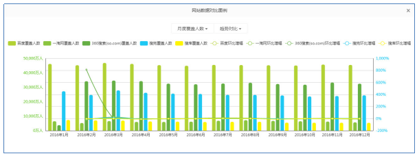 如今,安全品牌不仅仅成为了360系列产品的优势,同时也让360搜索找到了差异点,在搜索市场中异军突起。2017年2月,国内知名数据咨询公司艾瑞公司公布了2016年12月PC覆盖率数据。数据显示,360搜索不但稳居互联网网站流量前五,更在搜索引擎领域稳居第一阵营。