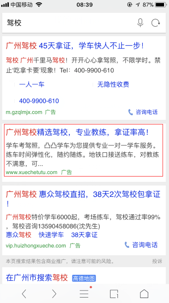 推广模式:竞价排名,点击扣费