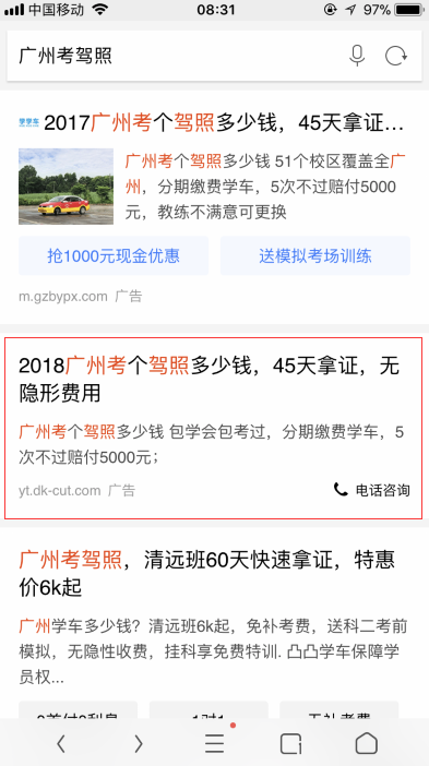推广模式:CPC,移动搜索推广