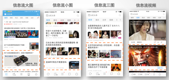 UC头条广告形式有开屏广告、图片广告、图文广告、APP下载广告、视频广告等,广告主可以根据自身用户和产品的特性,选择适合自己的广告创意样式。